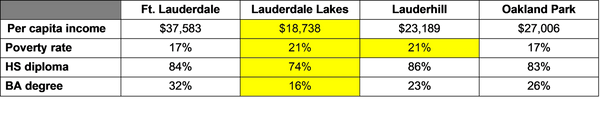 Lauderdale Lakes was identified as the area with the highest need within the entire county base on the preselected variables.